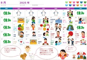 2025年8月のスケジュールが決まりましたのでお知らせします。