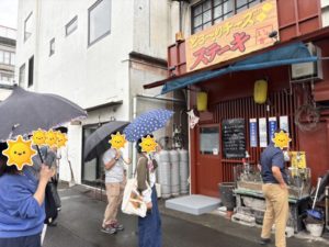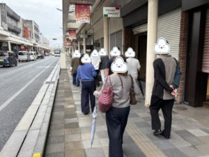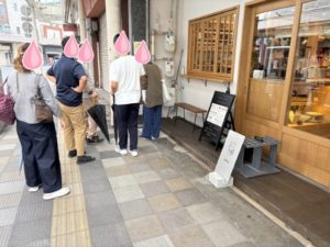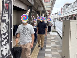 昭和レトロな商店街で、五感を使った気づき体験中。