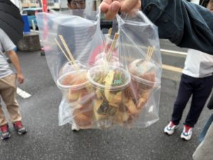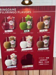 ウォーキングの後は、吉原中央駅近くにオープンしたりんご飴専門店「富士林檎」へ。