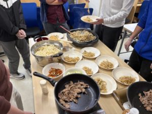 午後、レシピの確認、役割分担、手順の理解、時間配分、片づけまで、実践的な作業を通じて課題を発見し、終了後には振り返りと改善点の共有も行いました。