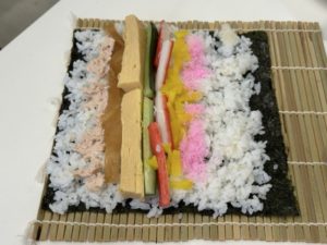 酢飯の広げ方、具材の量、巻きすの使い方などをデモンストレーション。