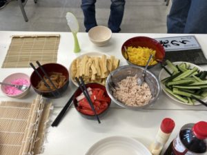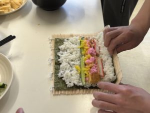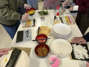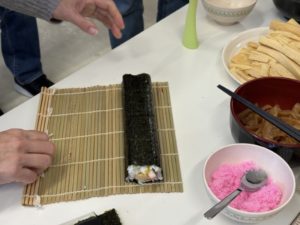 今回のイベントでは、季節に合わせて「恵方巻き作り」に取り組みました。