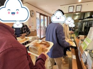 今回は、地域で親しまれている“のっぽパン”ブランドを扱う近隣のパン屋さんまでウォーキングし、利用者の皆さんが店内で思い思いのパンを選びました。