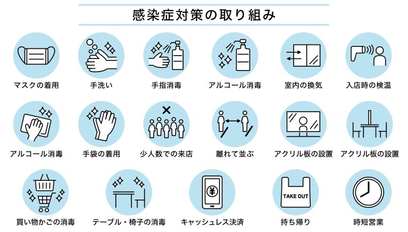 新型コロナウイルス感染症拡大防止のため、以下のような取り組みをおこなっていますので、ご理解とご協力をお願い致します。